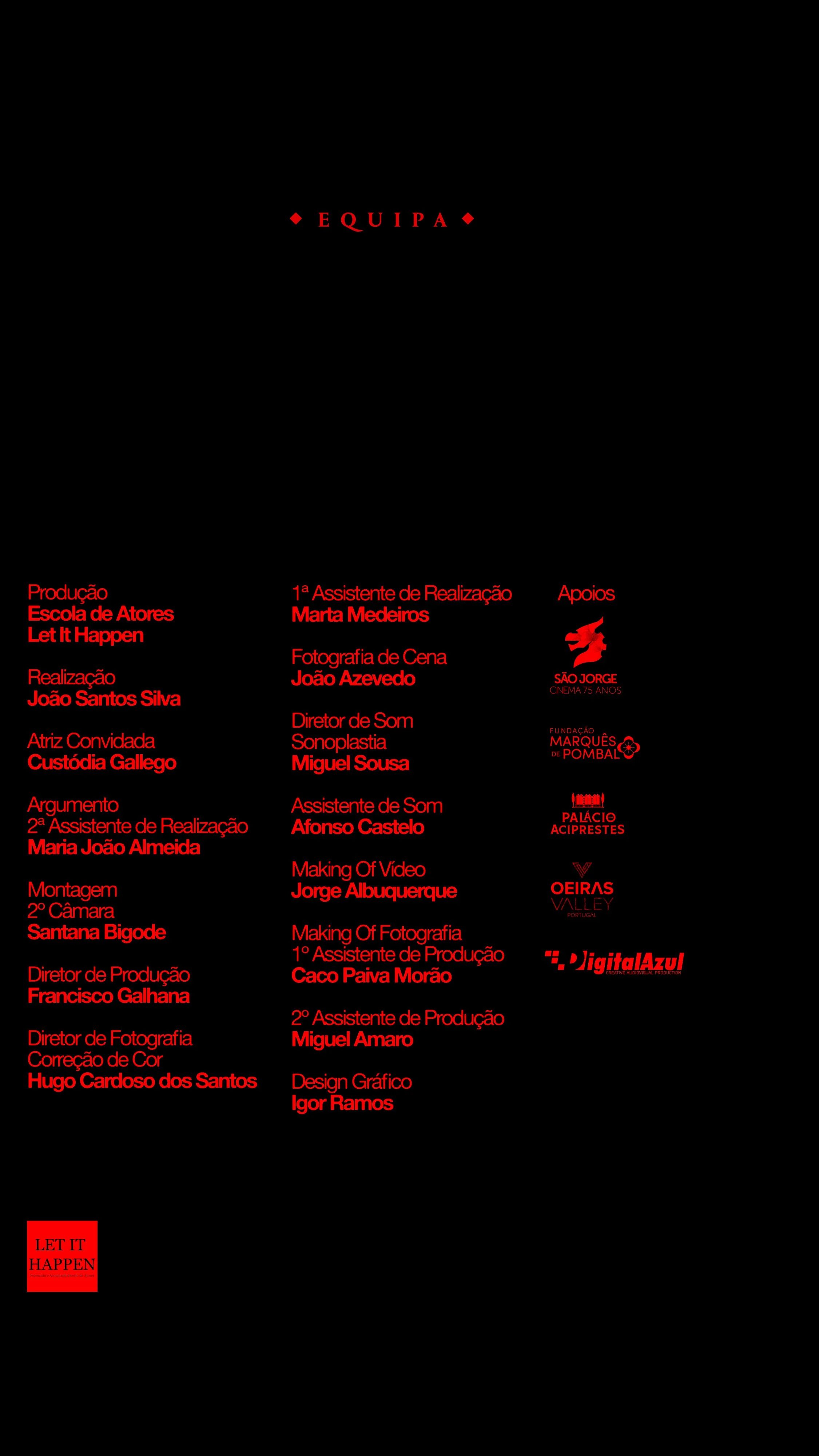 No filme “A Casa”, os alunos da Escola de Atores Let It Happen viveram um ano de trabalho focado na preparação para o cinema. O programa foi adaptado especialmente a este projeto, com um percurso que uniu exercícios de acting, treino emocional e ensaios técnicos, ajustados às necessidades de cada turma e ao universo do filme. Durante os ensaios, os alunos exploraram diferentes estados emocionais, da calma ao desespero, do silêncio à explosão, aprendendo a manter a concentração em situações de grande intensidade. Cada sessão foi desenhada para desenvolver a escuta, o controlo do corpo, a respiração e a reação genuína diante da câmara. As cenas exigiram atenção ao detalhe e presença total. Foram recriadas situações de tensão, movimento, surpresa e vulnerabilidade, trabalhando o olhar, o tempo de reação e a relação com o espaço. Houve também testes de imagem e luz, essenciais para compreender como a câmara capta a verdade de cada momento. Mais do que representar, o desafio passou por viver as emoções em estado puro, com autenticidade e consciência técnica. “A Casa” foi, para os alunos, uma experiência de cinema completa, um trabalho exigente, de grupo, onde a preparação, a imaginação e a entrega foram tão importantes quanto o resultado final.